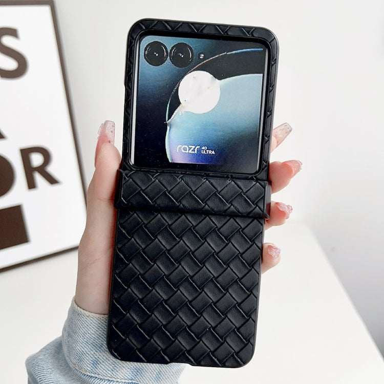 For Motorola Razr 40 Ultra Three-piece Set Woven Texture Folding PU Phone Case(Black)