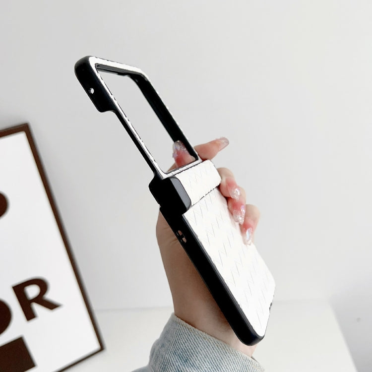 For Motorola Razr 40 Ultra Three-piece Set Woven Texture Folding PU Phone Case(Pink)