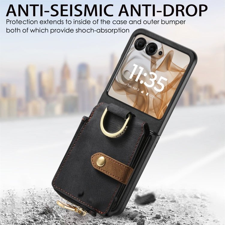 For Motorola Razr 50 Retro Ring Vertical Zipper Wallet Phone Case(Black)