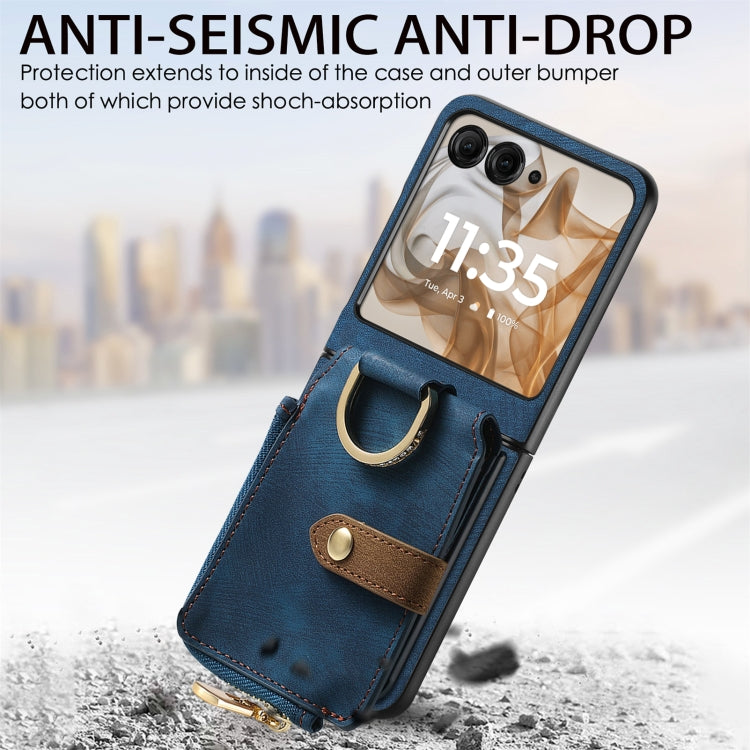 For Motorola Razr 50 Retro Ring Vertical Zipper Wallet Phone Case(Blue)
