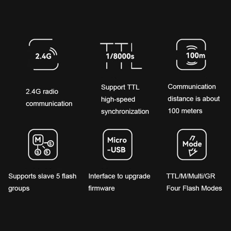1. 1/8000s high-speed synchronization, support TTL light ratio, exposure compensation, exposure lock and other functions