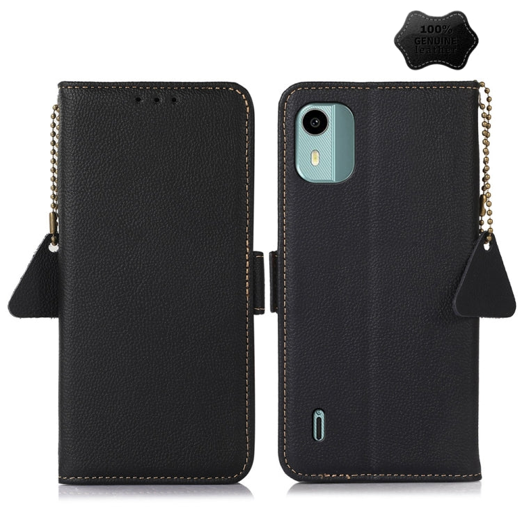 For Nokia C12 4G Side-Magnetic TJ Genuine Leather RFID Phone Case(Black)
