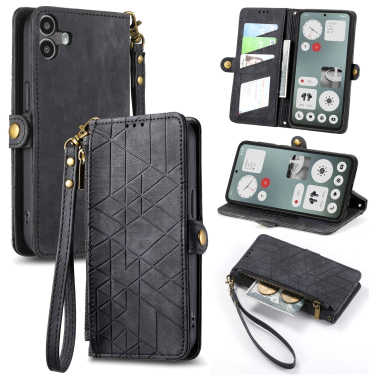 For Nothing CMF Phone 1 Geometric Zipper Wallet Side Buckle Leather Phone Case(Black)