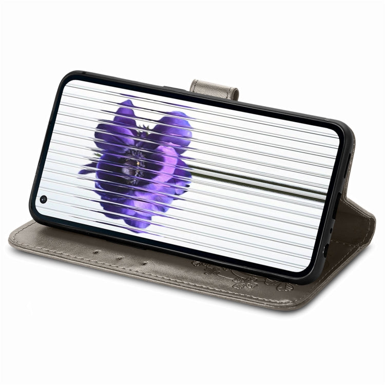 For Nothing Phone 1 Four-leaf Clasp Embossed Buckle Leather Phone Case(Gray)
