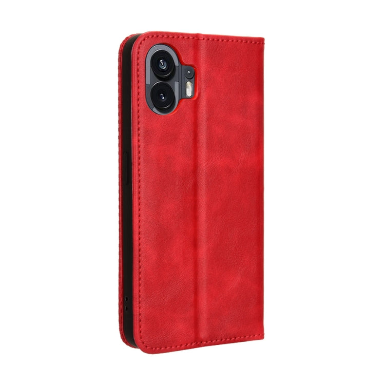 For Nothing Phone 2 Magnetic Buckle Retro Texture Leather Phone Case(Red)