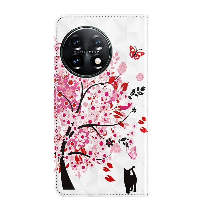 For OnePlus 11 3D Painting Pattern TPU + PU Leather Phone Case(Cat Under The Tree)