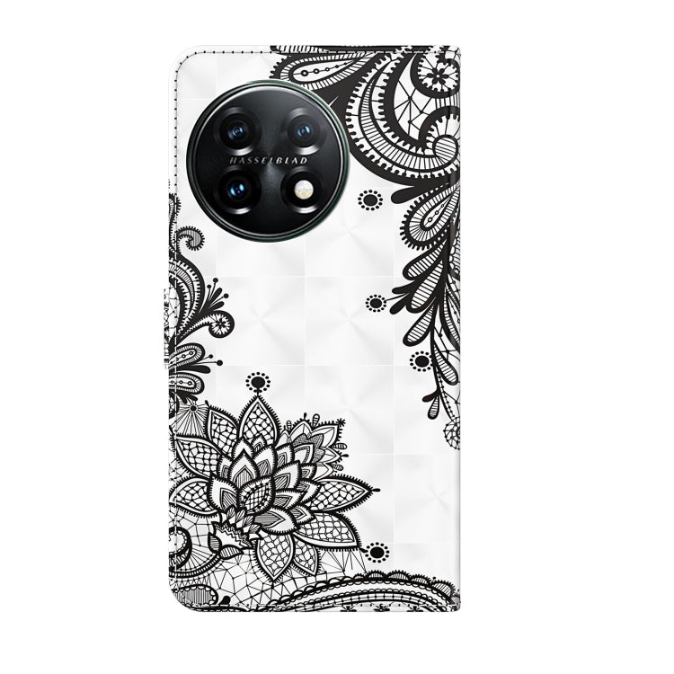 For OnePlus 11 3D Painting Pattern TPU + PU Leather Phone Case(Diagonal Black Flower)