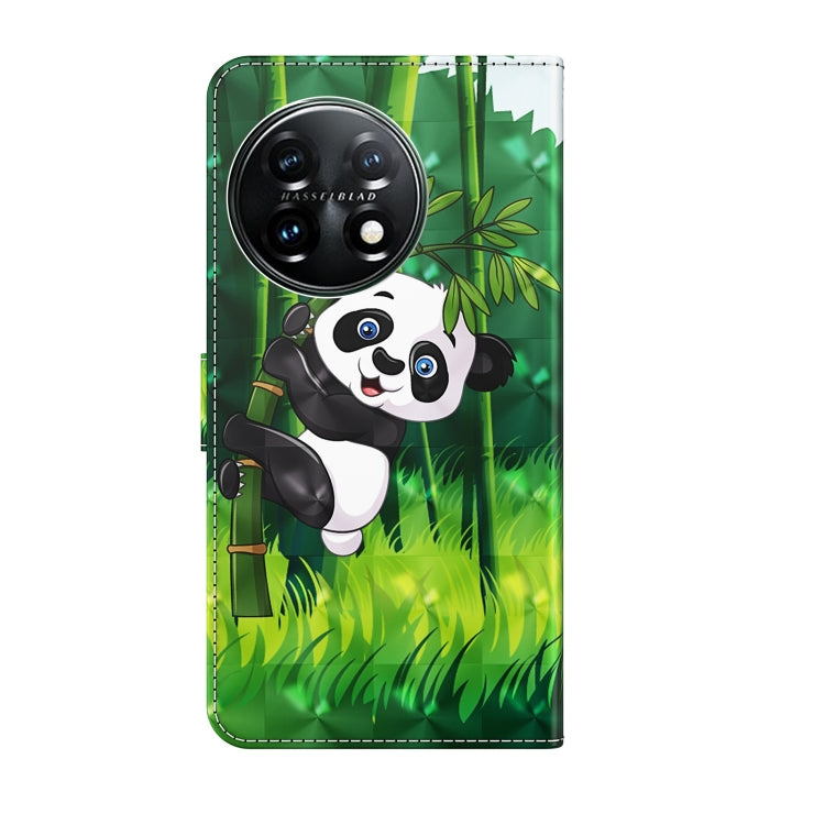 For OnePlus 11 3D Painting Pattern TPU + PU Leather Phone Case(Panda Climbing Bamboo)
