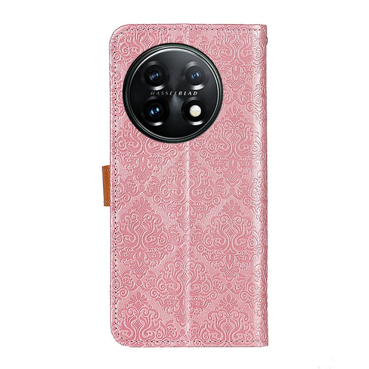 For OnePlus 11 5G European Floral Embossed Flip Leather Phone Case(Pink)