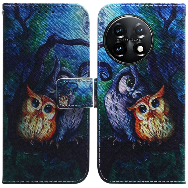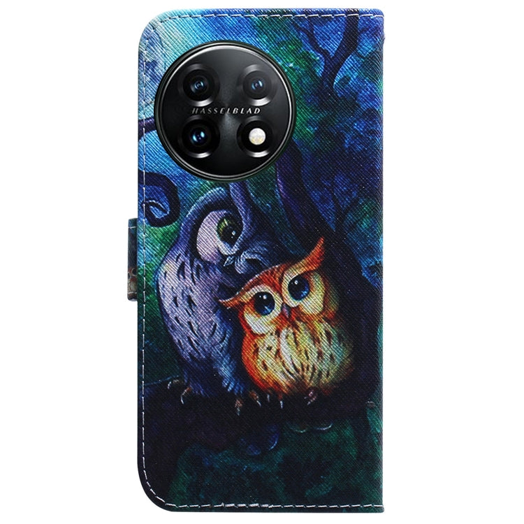 For OnePlus 11 Coloured Drawing Flip Leather Phone Case(Oil Painting Owl)