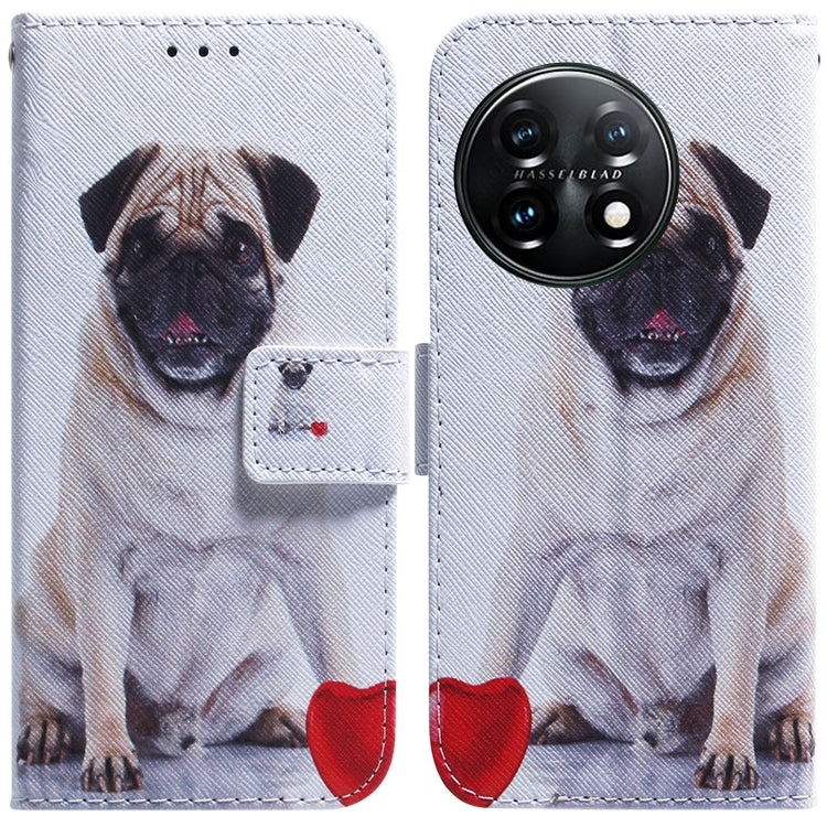 For OnePlus 11 Coloured Drawing Flip Leather Phone Case(Pug)
