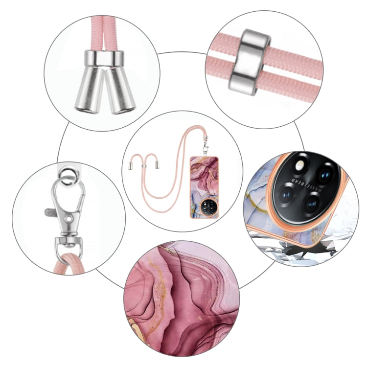 For OnePlus 11 Electroplating Marble Dual-side IMD Phone Case with Lanyard(Rose Red 014)