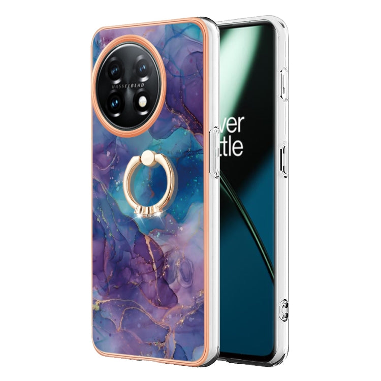 For OnePlus 11 Electroplating Marble Dual-side IMD Phone Case with Ring(Purple 016)