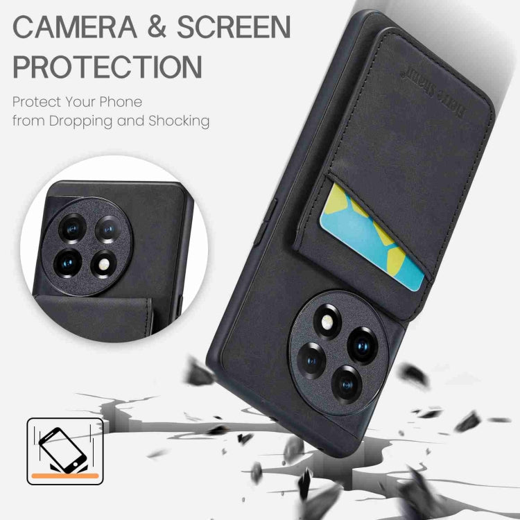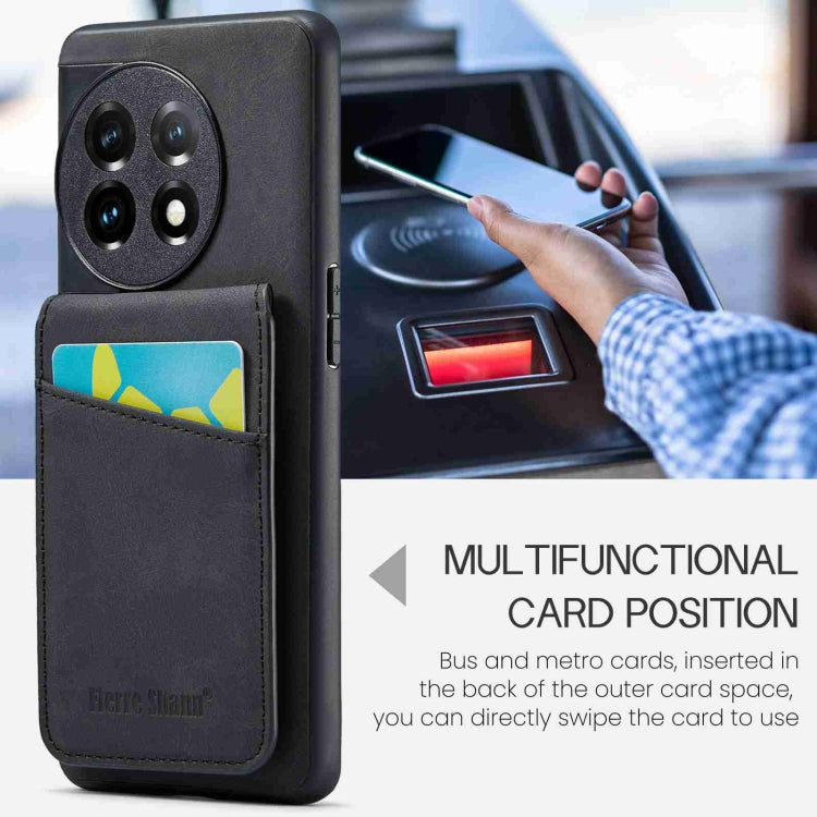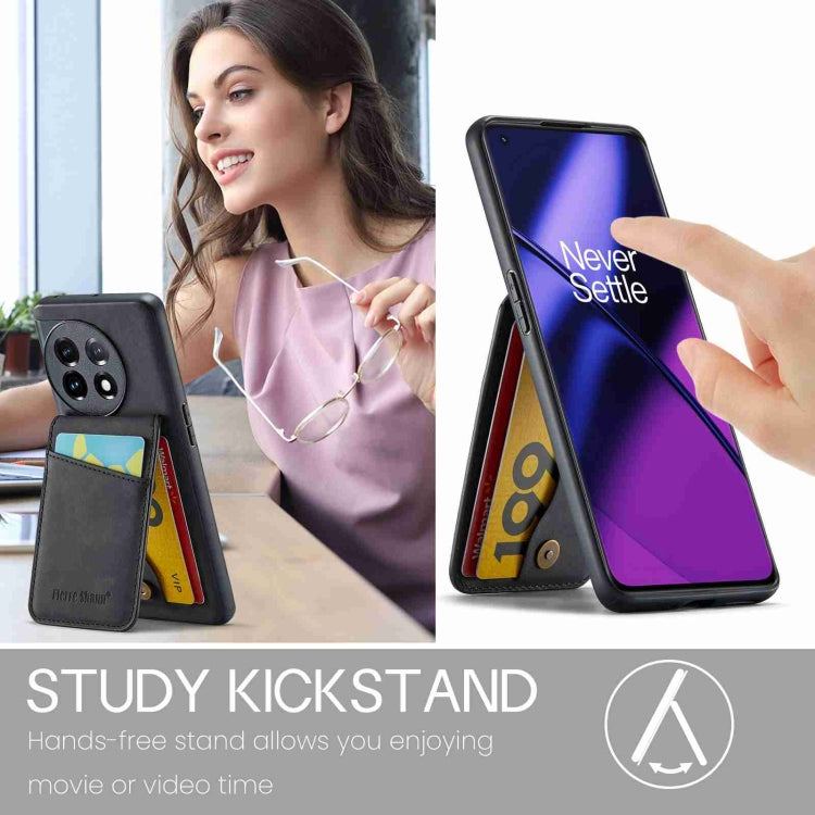 For OnePlus 11 Fierre Shann Crazy Horse Card Holder Back Cover PU Phone Case(Black)