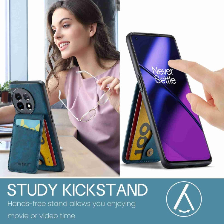 For OnePlus 11 Fierre Shann Crazy Horse Card Holder Back Cover PU Phone Case(Blue)