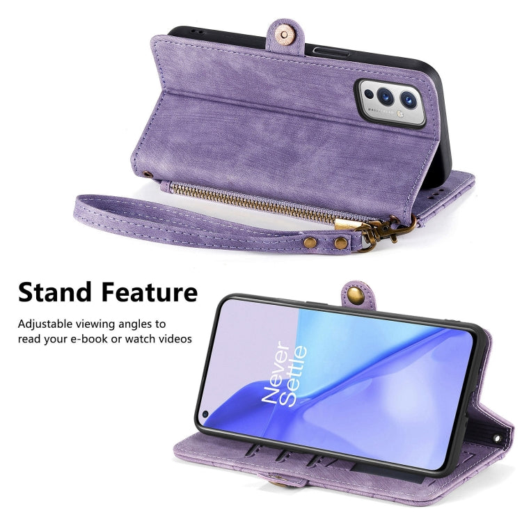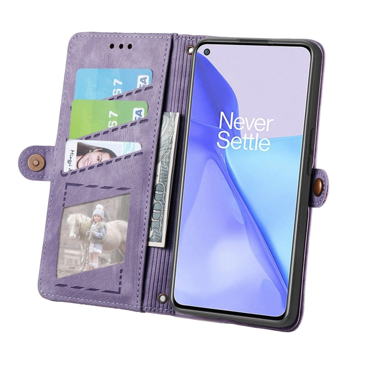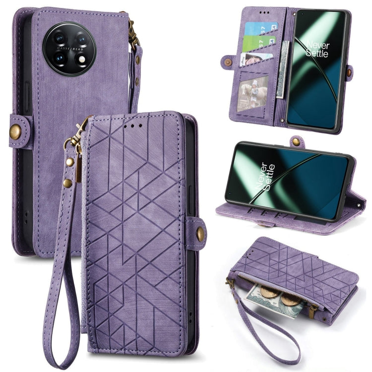 For OnePlus 11 Geometric Zipper Wallet Side Buckle Leather Phone Case(Purple)