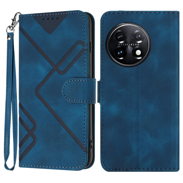 For OnePlus 11 Line Pattern Skin Feel Leather Phone Case(Royal Blue)