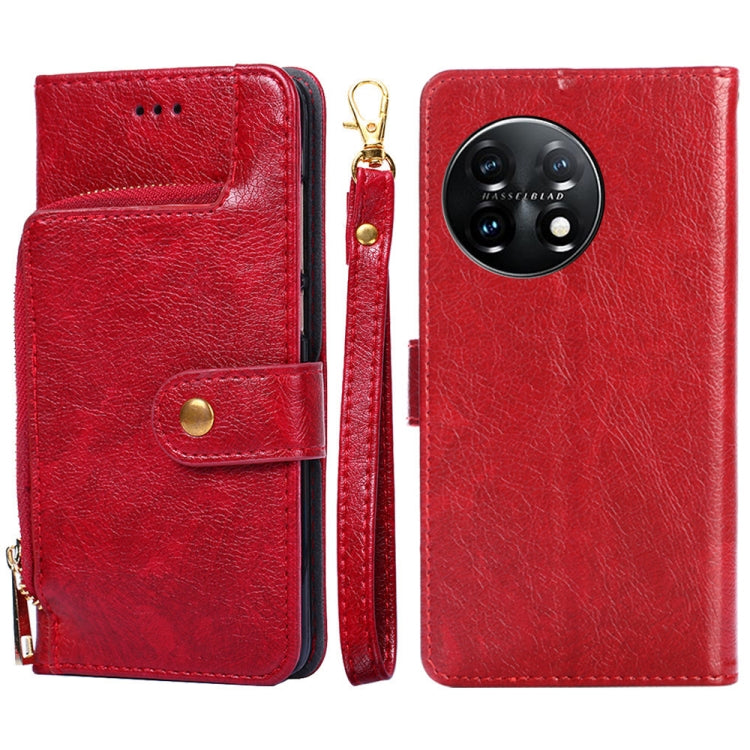 For OnePlus 11 Zipper Bag Leather Phone Case(Red)