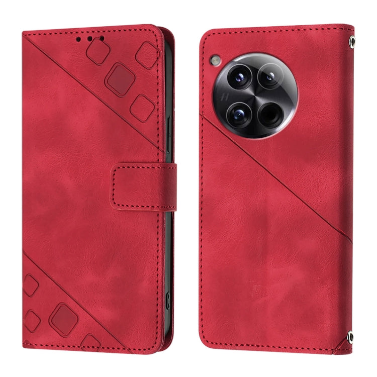 For OnePlus 12 5G Global Skin-feel Embossed Leather Phone Case(Red)