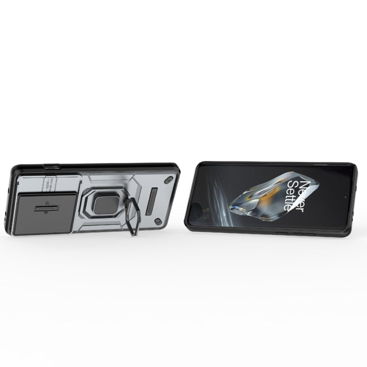 For OnePlus 12 5G Sliding Camshield TPU + PC Shockproof Phone Case with Holder(Grey)