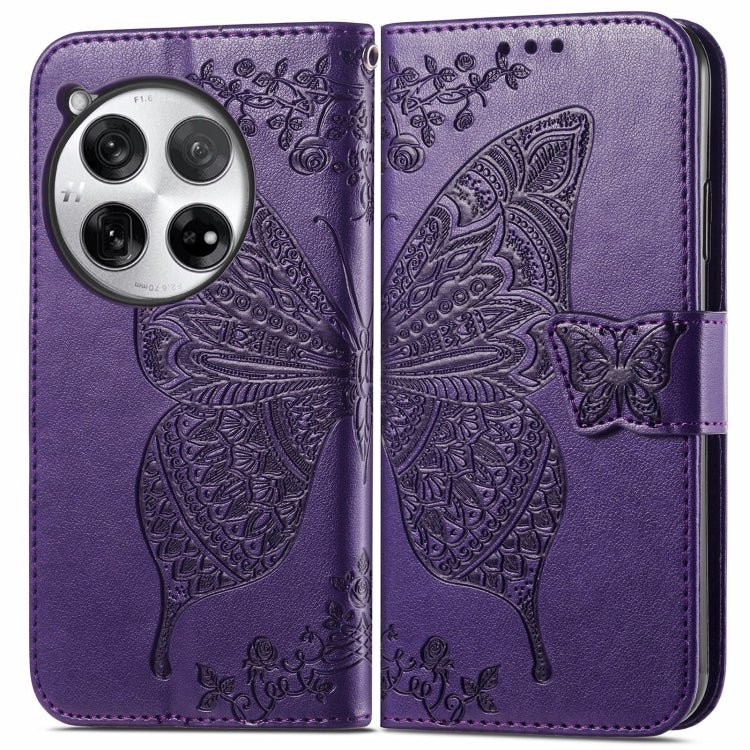 For OnePlus 12 Butterfly Love Flower Embossed Leather Phone Case(Dark Purple)