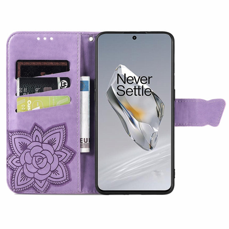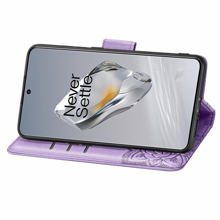 For OnePlus 12 Butterfly Love Flower Embossed Leather Phone Case(Light Purple)