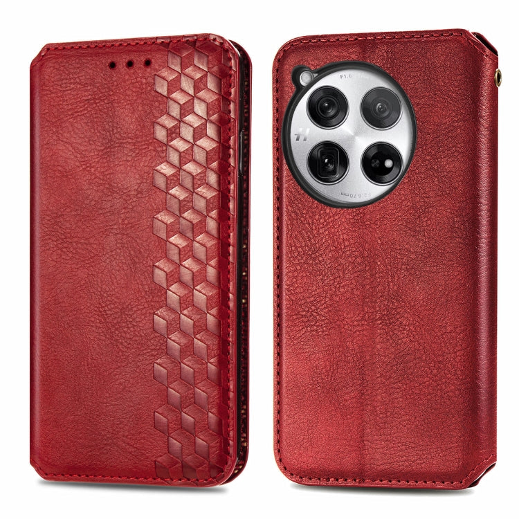 For OnePlus 12 Cubic Grid Pressed Magnetic Leather Phone Case(Red)