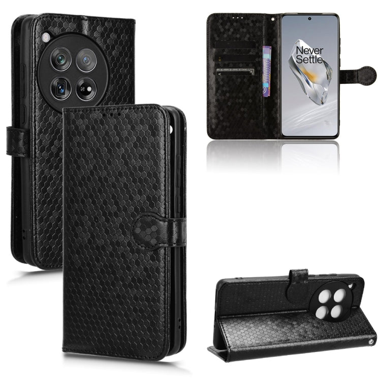 For OnePlus 12 Honeycomb Dot Texture Leather Phone Case(Black)