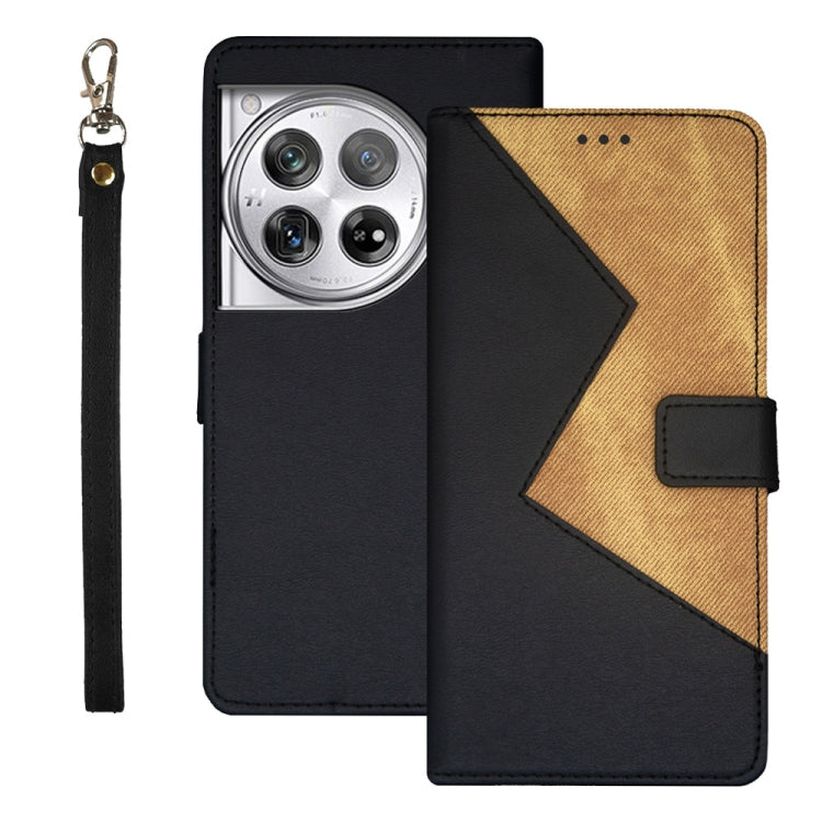 For OnePlus 12 idewei Two-color Splicing Leather Phone Case(Black)