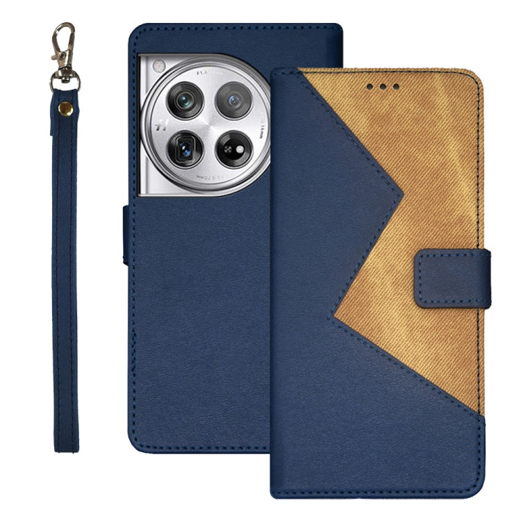 For OnePlus 12 idewei Two-color Splicing Leather Phone Case(Blue)