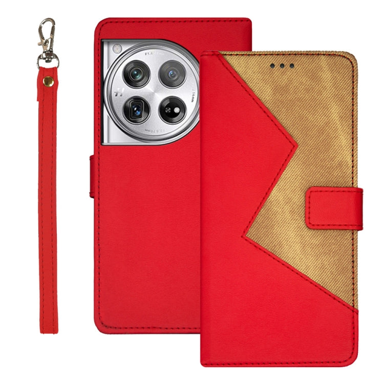 For OnePlus 12 idewei Two-color Splicing Leather Phone Case(Red)