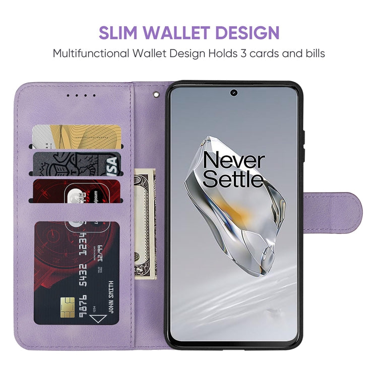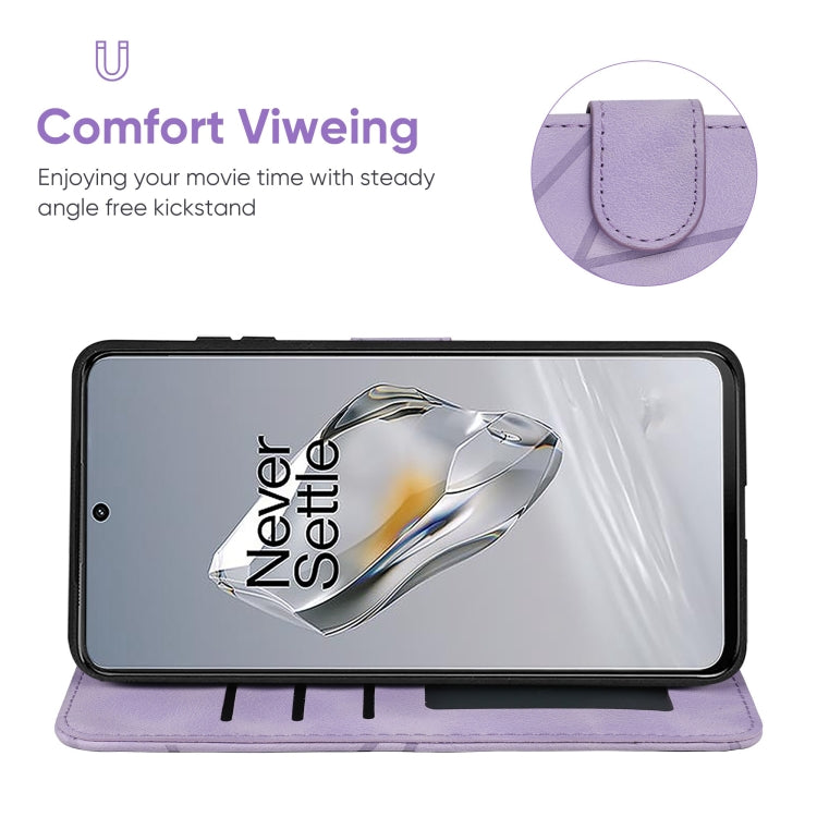 For OnePlus 12 Skin Feel Geometric Lines Leather Phone Case(Purple)
