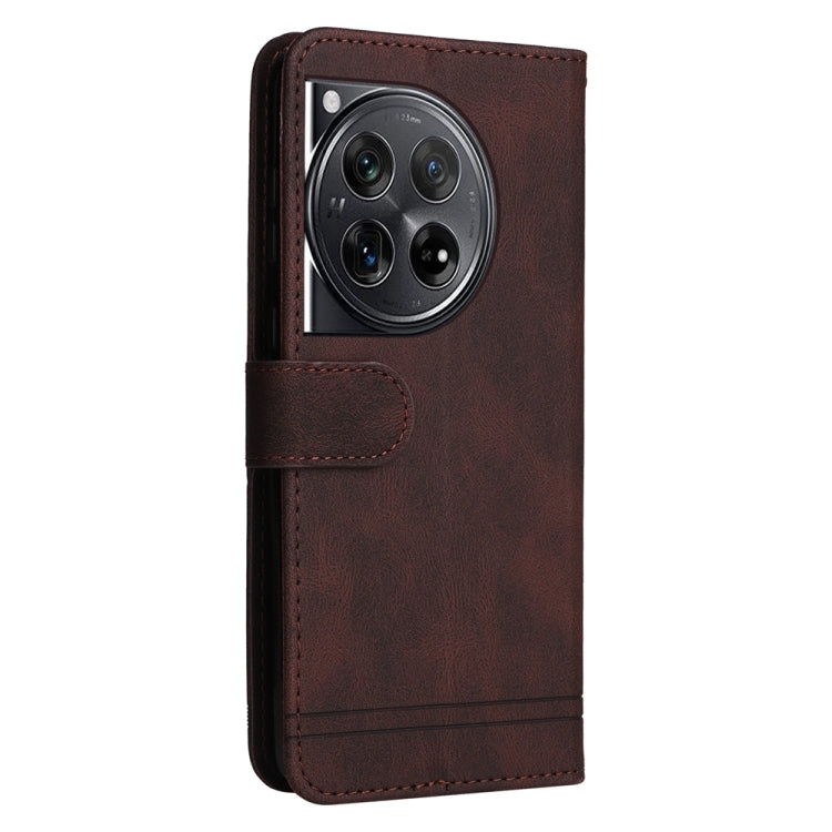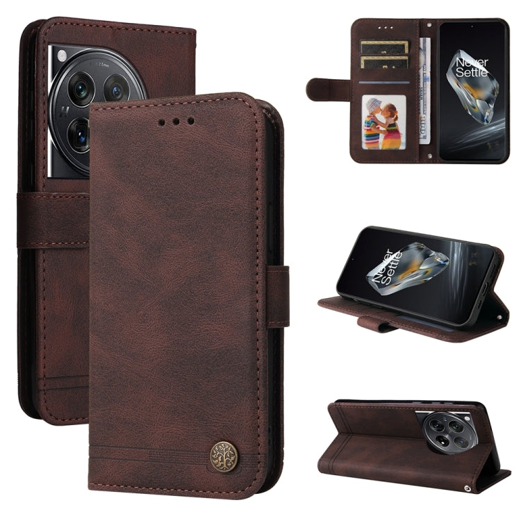 For OnePlus 12 Skin Feel Life Tree Metal Button Leather Phone Case(Brown)