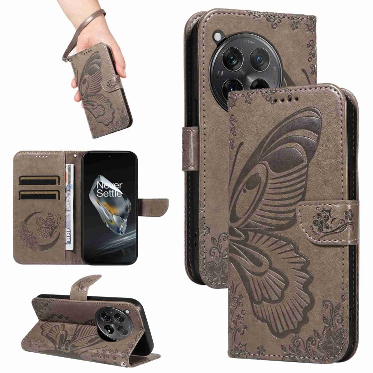 For OnePlus 12 Swallowtail Butterfly Embossed Leather Phone Case(Grey)