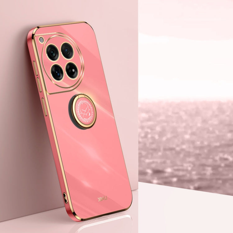 For OnePlus 12 XINLI Straight Edge 6D Electroplate TPU Phone Case with Ring Holder(Hawthorn Red)