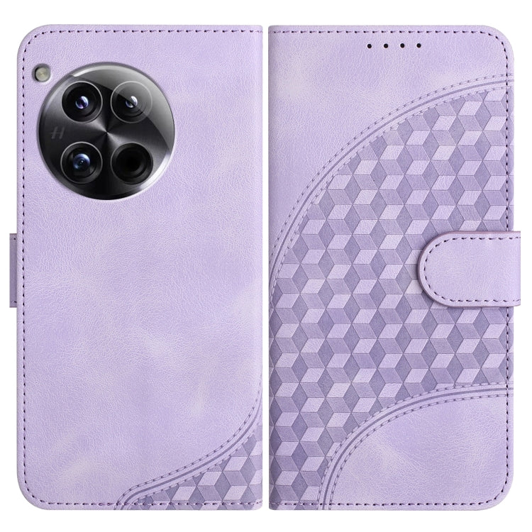 For OnePlus 12 Elephant Head Embossed Phone Leather Case with Lanyard(Light Purple)