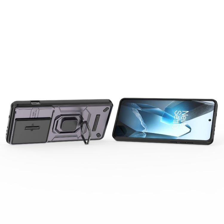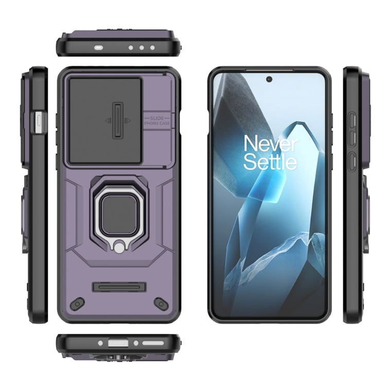 For OnePlus 13 5G Sliding Camshield TPU + PC Shockproof Phone Case with Holder(Purple)