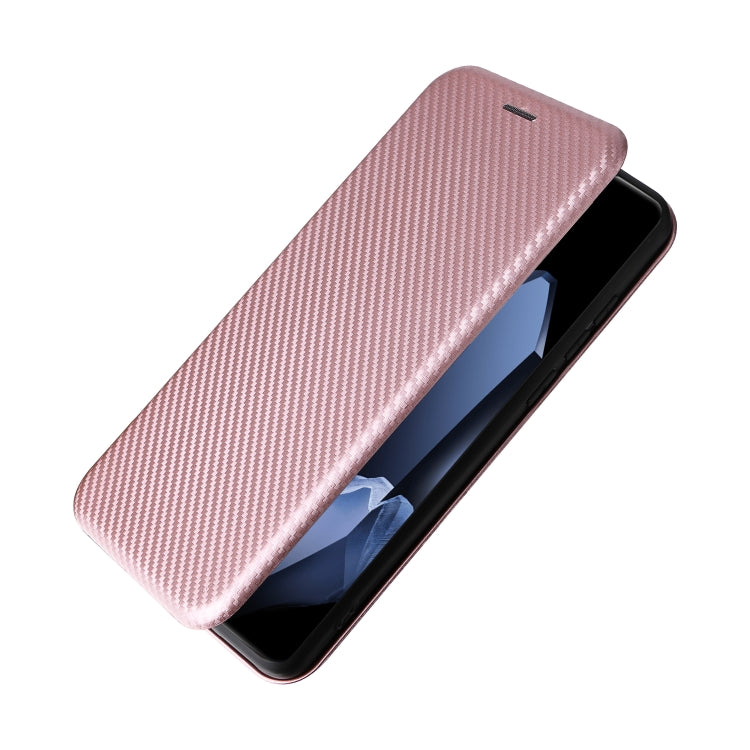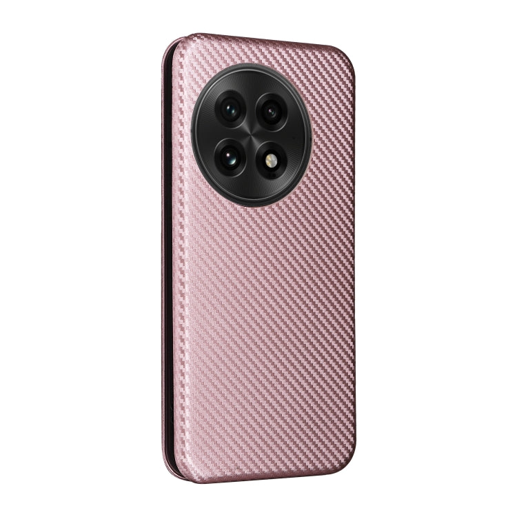 For OnePlus 13 Carbon Fiber Texture Flip Leather Phone Case(Pink)
