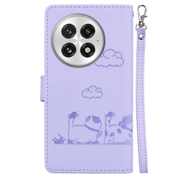 For OnePlus 13 Cute Cats RFID Leather Phone Case(Purple)