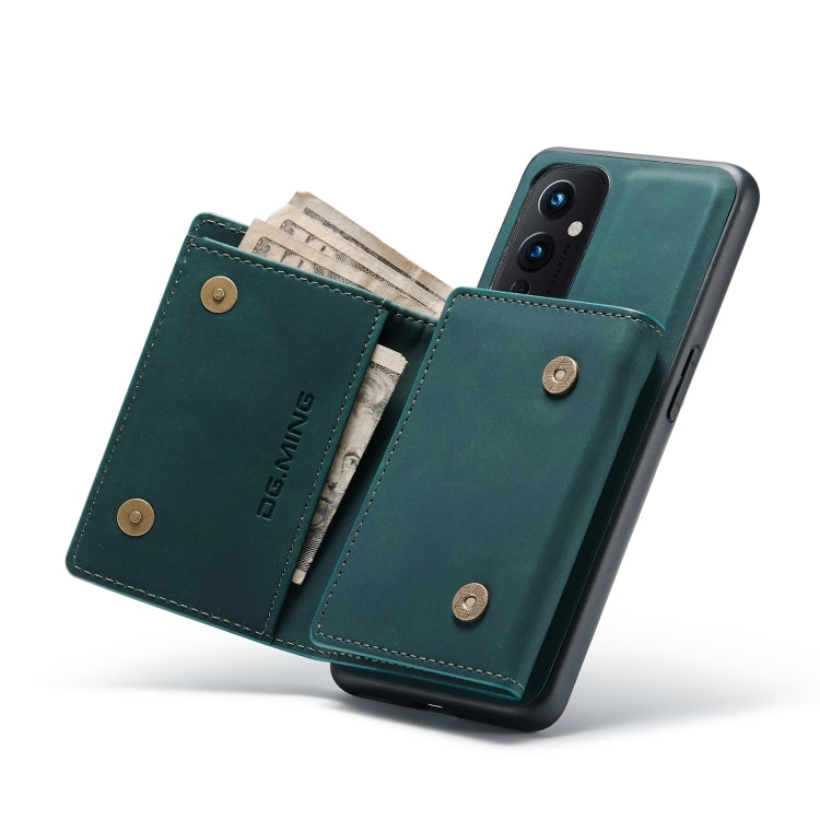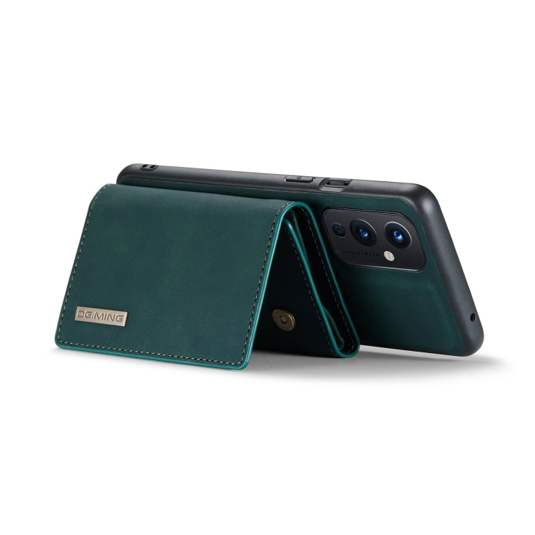 For OnePlus 9 (EU/NA) DG.MING M1 Series 3-Fold Multi Card Wallet Back Cover Shockproof Case with Holder Function(Green)