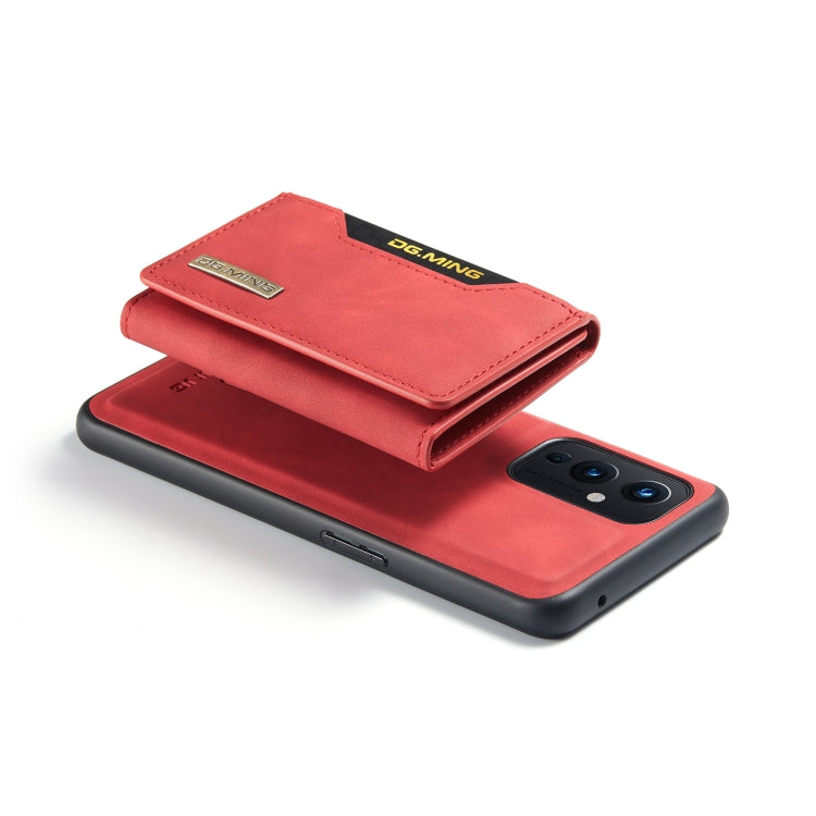For OnePlus 9 (EU/NA) DG.MING M2 Series 3-Fold Multi Card Bag Back Cover Shockproof Case with Wallet & Holder Function(Red)