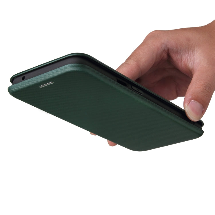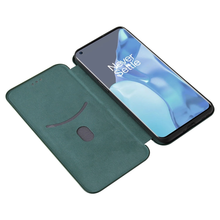 For OnePlus 9 Pro Carbon Fiber Texture Horizontal Flip TPU + PC + PU Leather Case with Card Slot(Green)