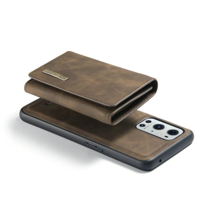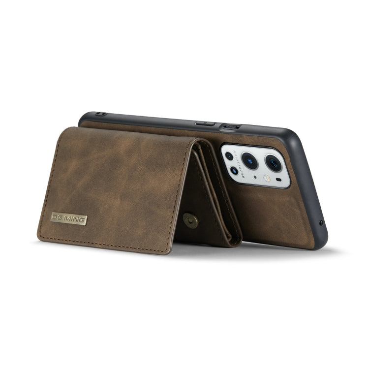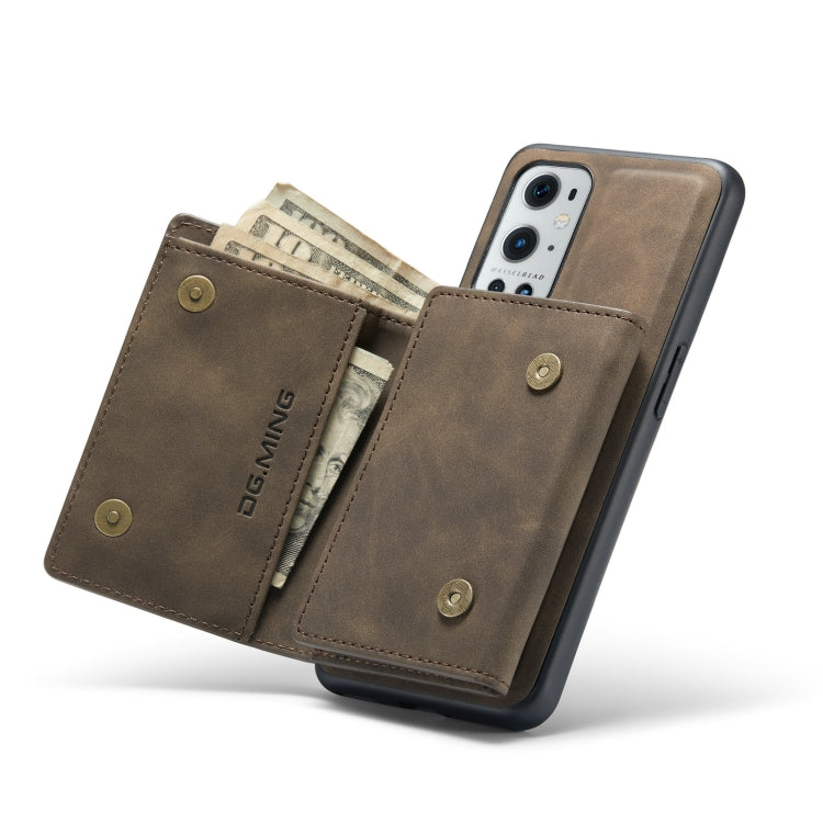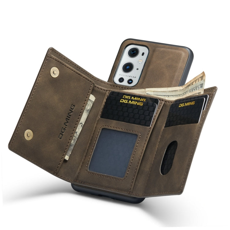 For OnePlus 9 Pro DG.MING M1 Series 3-Fold Multi Card Wallet Back Cover Shockproof Case with Holder Function(Coffee)