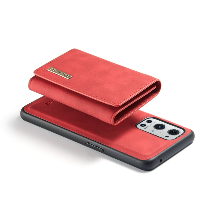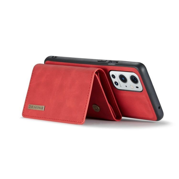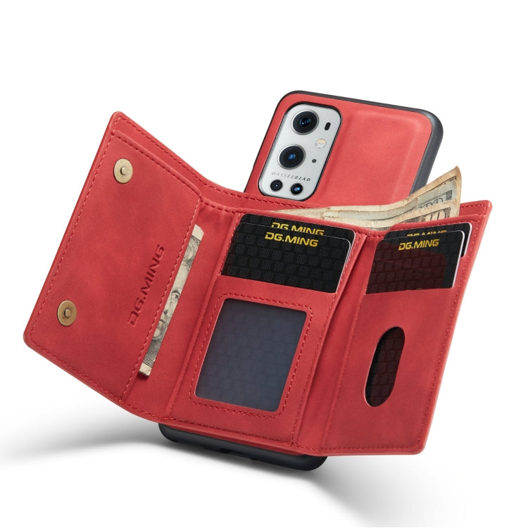 For OnePlus 9 Pro DG.MING M1 Series 3-Fold Multi Card Wallet Back Cover Shockproof Case with Holder Function(Red)