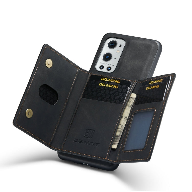 For OnePlus 9 Pro DG.MING M2 Series 3-Fold Multi Card Bag Back Cover Shockproof Case with Wallet & Holder Function(Black)