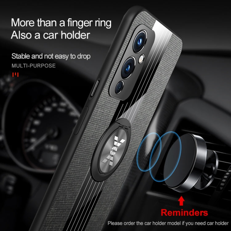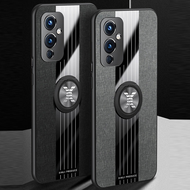 For OnePlus 9 XINLI Stitching Cloth Texture TPU Phone Case with Ring Holder(Grey)
