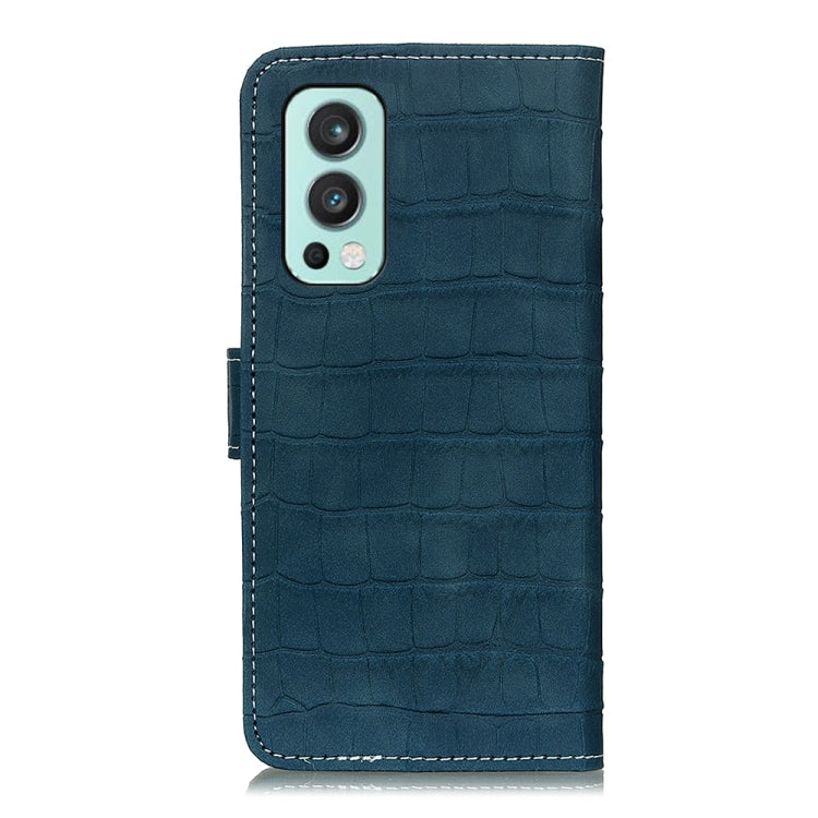 For OnePlus Nord 2 5G Magnetic Crocodile Texture Horizontal Flip Leather Case with Holder & Card Slots & Wallet(Green)