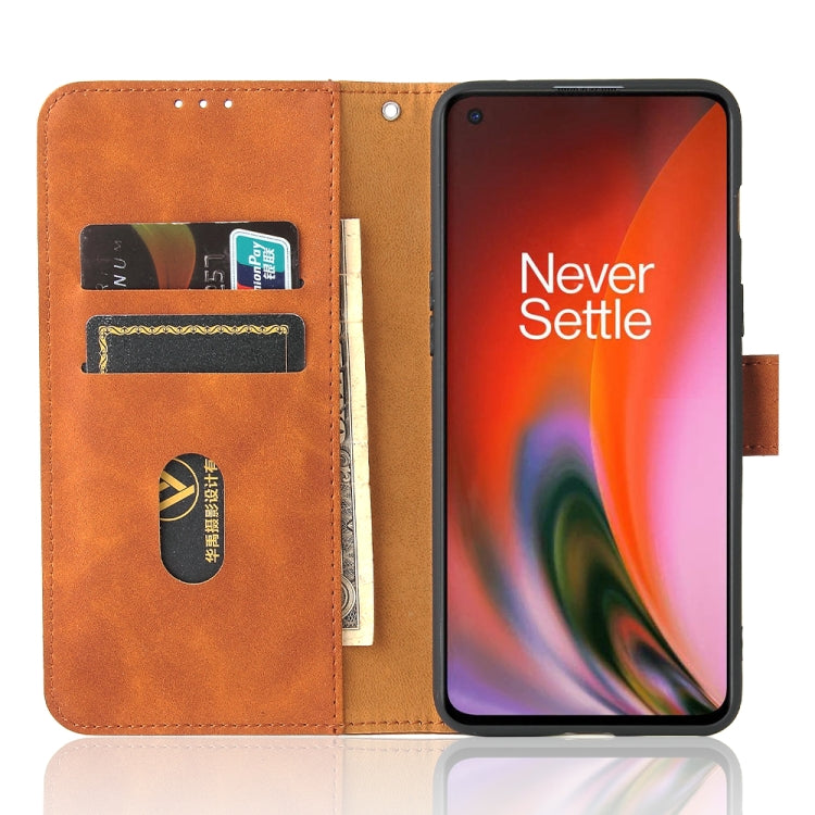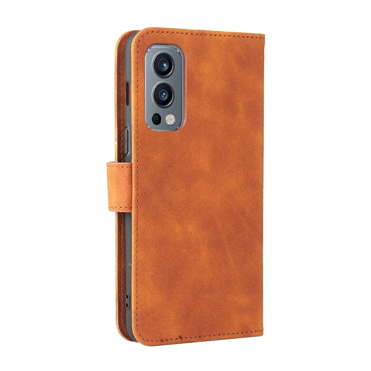 For OnePlus Nord 2 5G Solid Color Skin Feel Magnetic Buckle Horizontal Flip Calf Texture PU Leather Case with Holder & Card Slots & Wallet(Brown)