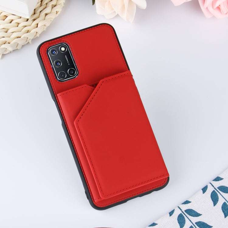 For OPPO A52 & A72 & A92 Skin Feel PU + TPU + PC Back Cover Shockproof Case with Card Slots & Holder & Photo Frame(Red)