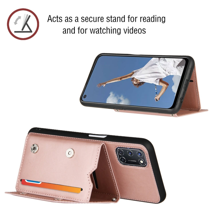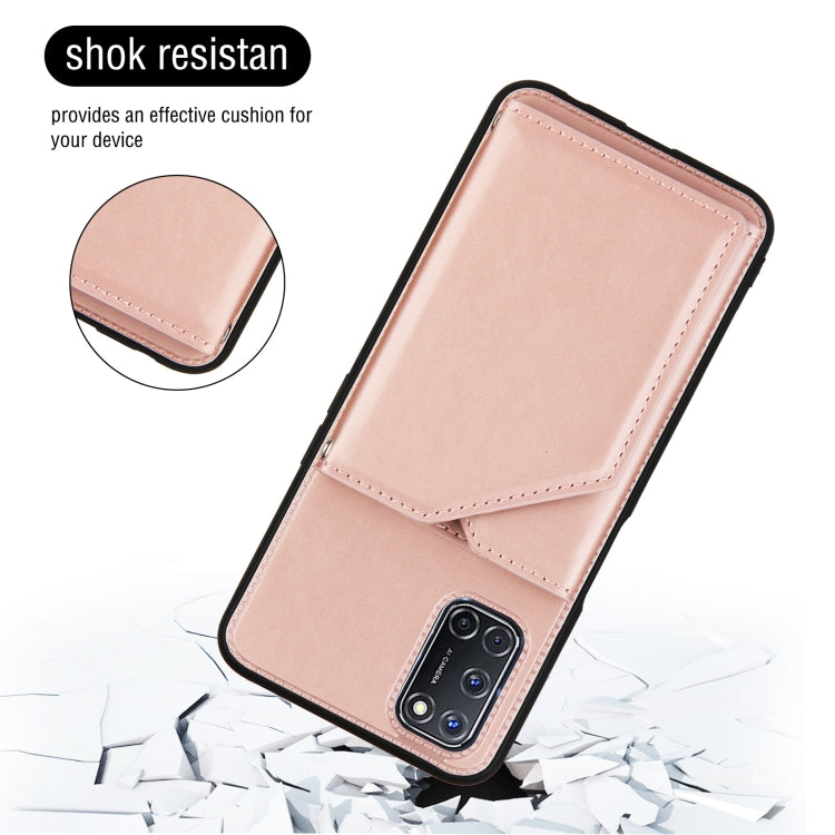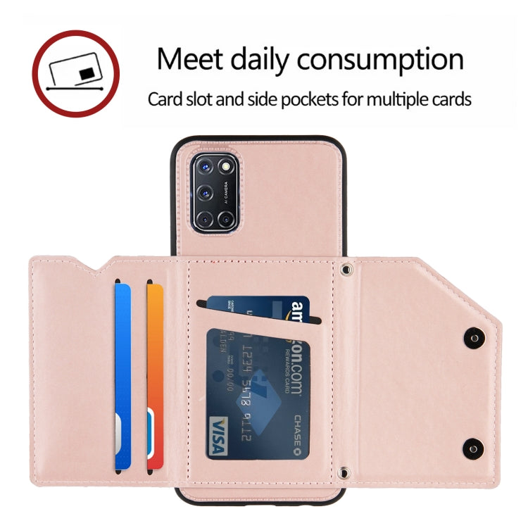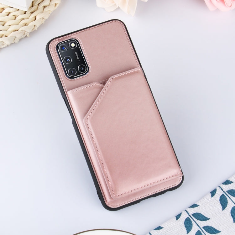 For OPPO A52 & A72 & A92 Skin Feel PU + TPU + PC Back Cover Shockproof Case with Card Slots & Holder & Photo Frame(Rose Gold)